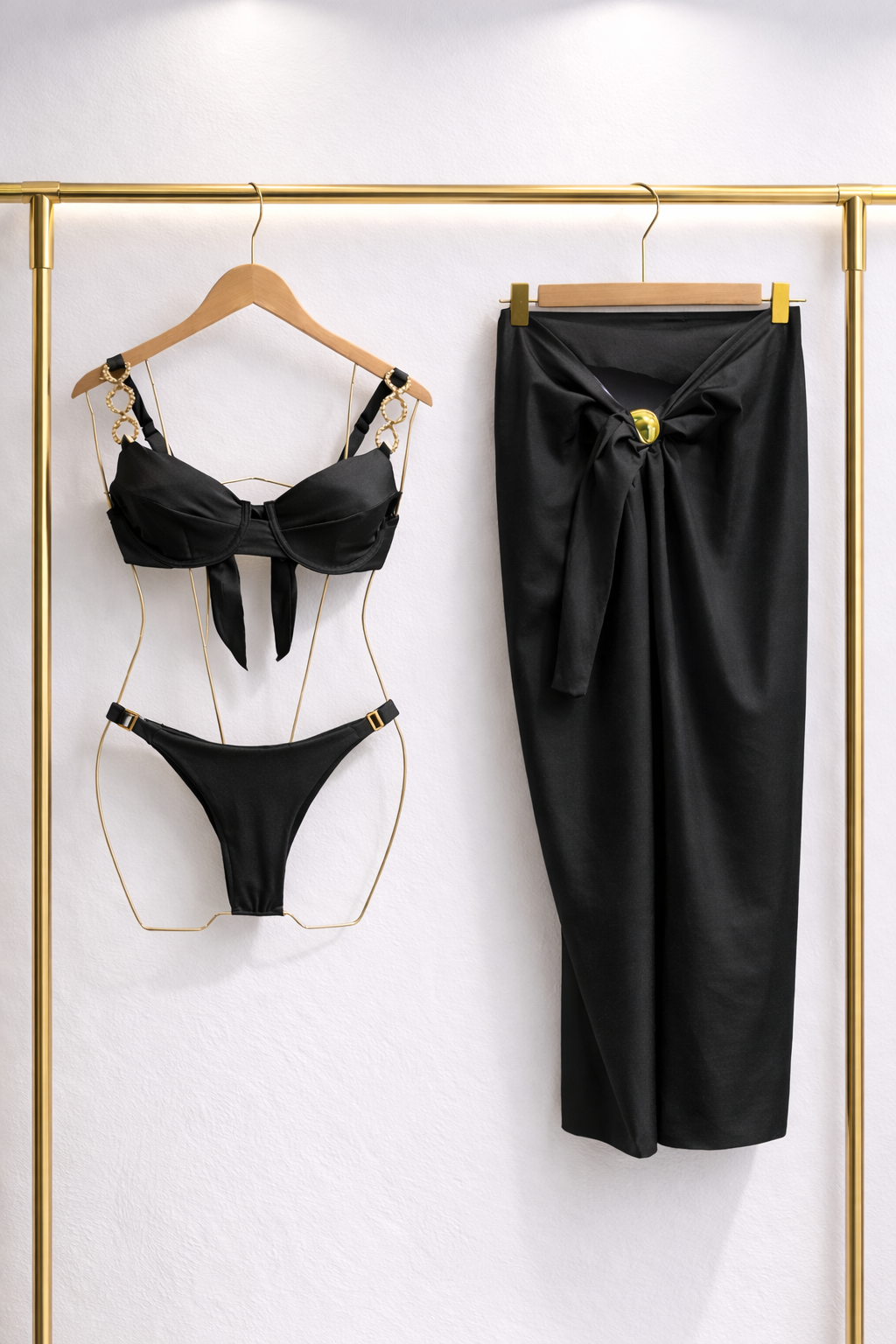 Modelo transpassado com amarração frontal, que valoriza a silhueta e se ajusta perfeitamente ao corpo.