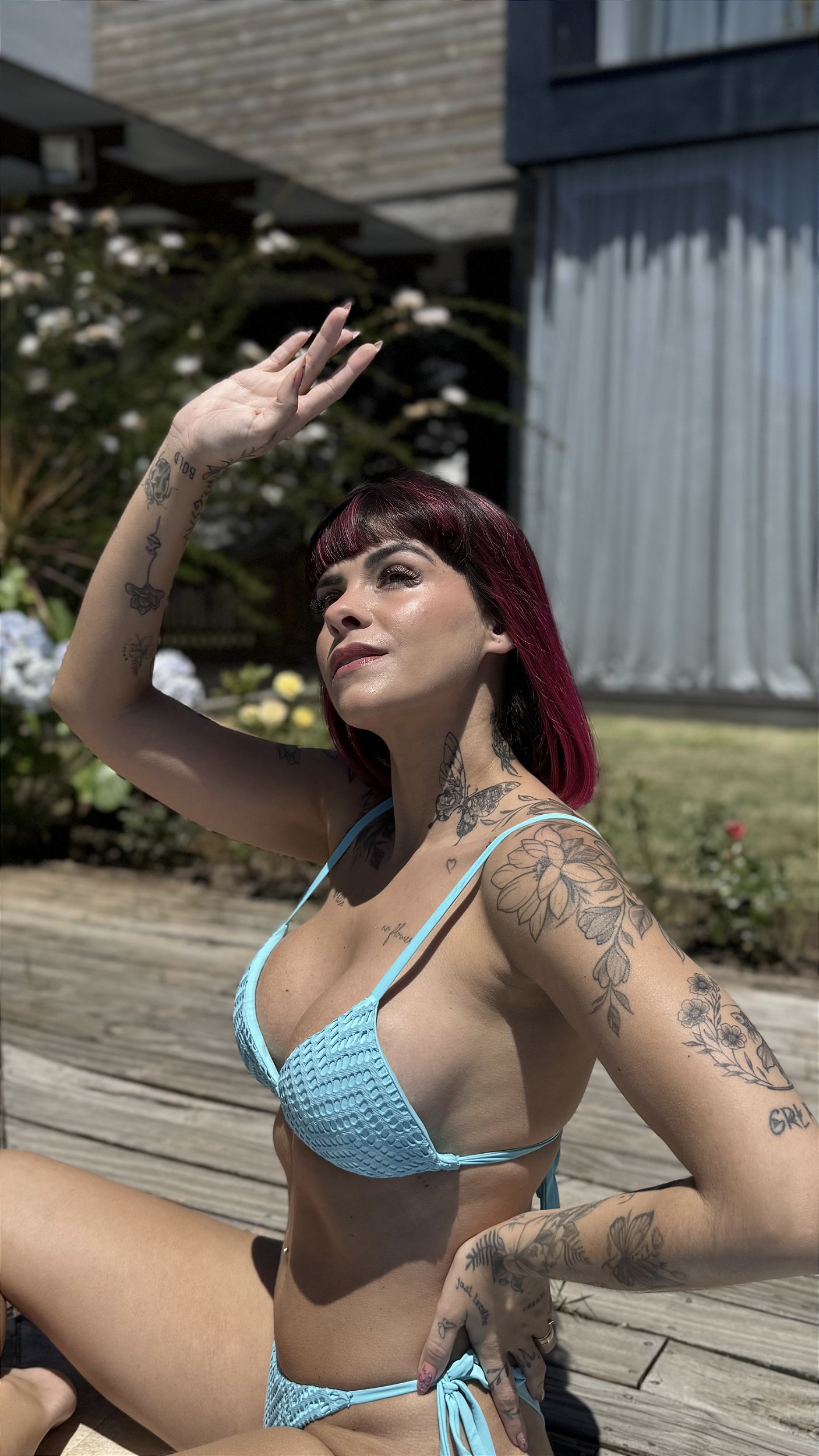 BIQUÍNI CORTININHA SARDENHA AZUL TURQUESA TEXTURIZADO