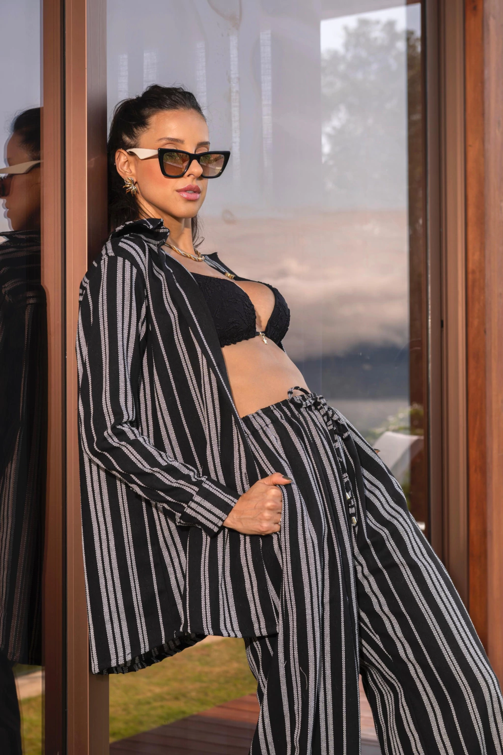 ✨ Conjunto Sienna✨ Nossos conjuntos de camisaria foram desenvolvidos para oferecer um visual moderno, confortável e sofisticado perfeitos para acompanhar a mulher em momentos de lazer, viagem ou no dia a dia com um toque de estilo. Confeccionados em uma mistura premium de viscose, poliéster, linho e algodão, esses tecidos proporcionam: • Toque leve e respirável, ideal para dias quentes; • Caimento fluido, que valoriza o movimento do corpo; • Textura natural, trazendo elegância sem esforço; • Conforto prolongado, com sensação fresca e macia na pele. Cada modelo apresenta padronagens listradas exclusivas, trazendo personalidade sem perder a sofisticação. As camisas possuem modelagem soltinha e versátil perfeitas para usar abertas com biquíni, fechadas ou como terceira peça. As calças contam com cintura confortável, amarração ajustável e caimento amplo, criando um conjunto harmônico e cheio de leveza. Os conjuntos traduzem a proposta da coleção: estilo descomplicado, natural e atemporal, combinando com a estética da sua marca e com a mulher que busca peças bonitas e práticas para todos os momentos. Tamanhos: P/M 36 ao 42 G/GG 44 ao 46